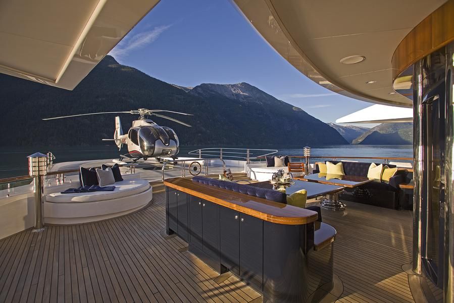 The yacht now also consists of a helicopter landing pad and hangar. This is a rare feature even among superyachts. The Attessa IV has been meticulously designed down to the last detail, from remote-controlled room systems to Gucci stainless steel lounge chairs arranged throughout the different decks.