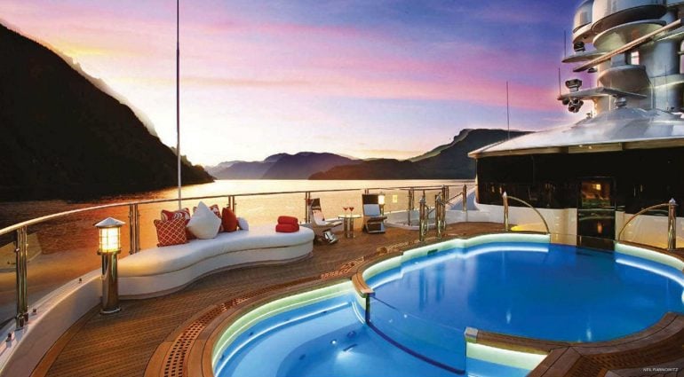 In addition to these, the floor-to-ceiling windows and doors of the guest deck are complemented by three Botero sculptures and provide access to breathtaking views. Moreover, the superyacht’s top on the sundeck has a pool with a shallow section for children. In 2012, Bill Gates enjoyed a family holiday aboard Attessa IV in Belize.