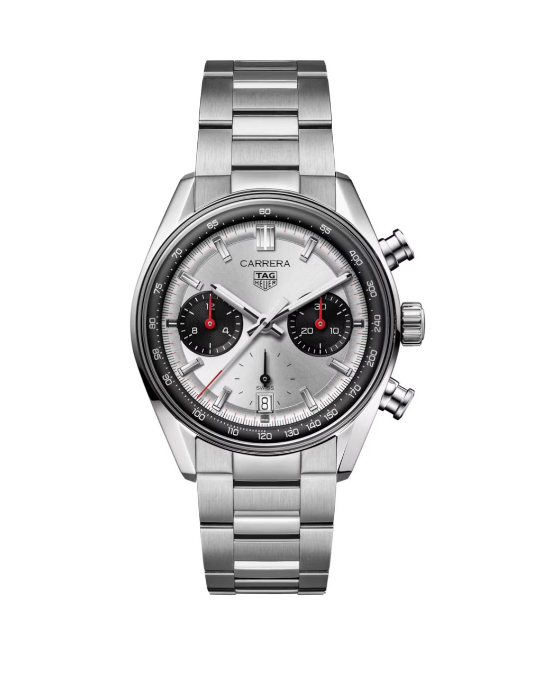 Now in 2024, TAG Heuer has re-introduced an iconic feature from one of the very first iterations some 60 years ago, adding the silvered dial with black subdials that has now become affectionately known as the “Panda”. The TAG Heuer Carrera Chronograph “Panda” is presented in an updated 39mm finely brushed stainless steel case and a bezel-free construction, with the brand’s ultra-modern in-house chronograph calibre TH20-00 boasting an impressive 80-hour power reserve.
